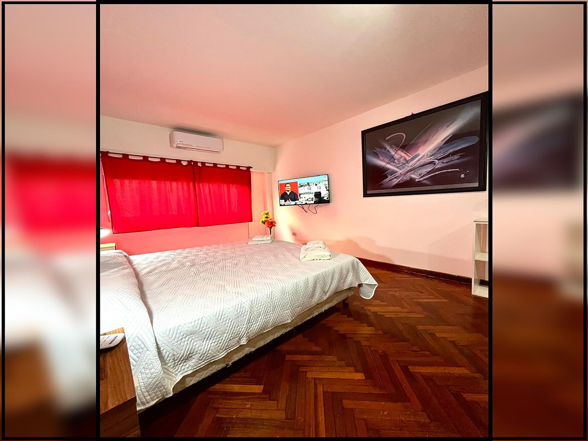 É muito luminoso e alegre durante todo o dia, decorado em tom vermelho.